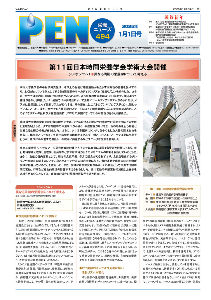 ◆第11回日本時間栄養学会学術大会開催シンポジウム1◉異なる周期の栄養学について考える ◆第46回日本栄養アセスメント研究会学術集会開催特別講演 「...