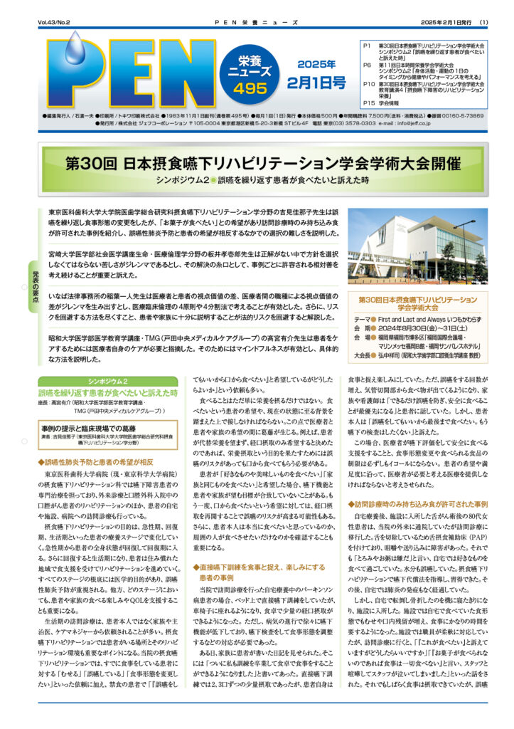◆第30回 日本摂食嚥下リハビリテーション学会学術大会開催シンポジウム2◉誤嚥を繰り返す患者が食べたいと訴えた時 ◆第11回日本時間栄養学会学術大会...