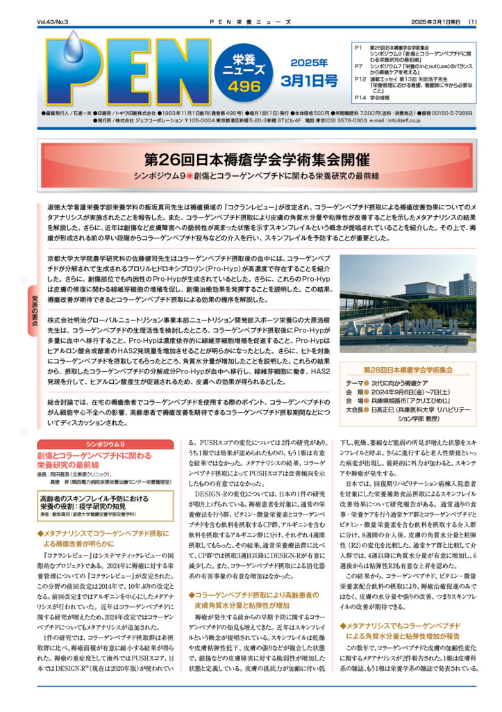 ◆第26回日本褥瘡学会学術集会開催シンポジウム9◉創傷とコラーゲンペプチドに関わる栄養研究の最前線 ◆第26回日本褥瘡学会学術集会開催シンポジウム7...